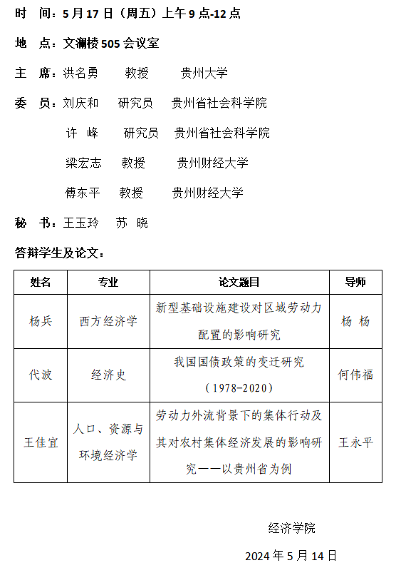 2024届博士研究生论文答辩公告