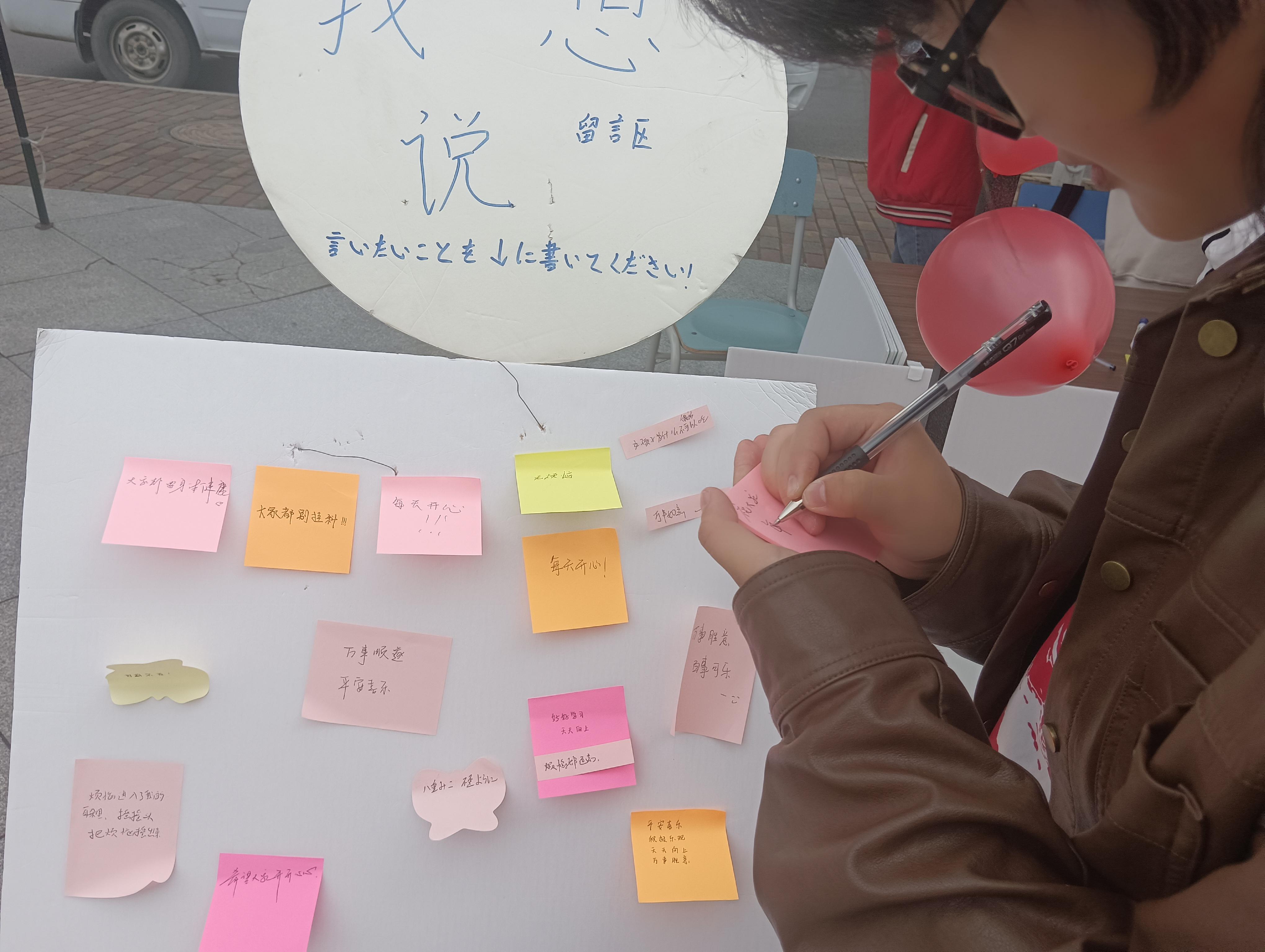 williamhill英国官网在本次主题活动中推出了两项特色活动。活动一是“我想说留言区”,让同学们尽情的倾诉自己最近遇到的烦恼。二是“游戏区”,通过听音乐抢凳子游戏让同学们在欢声笑语中放松心情。本次活动通过“倾诉”与”趣味游戏“吸引广大同学参与其中,同学们在活动参与过程中尽情释放压力,愉悦心情。
