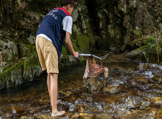 在团队老师的带领下,志愿者们前往巫忙河部分河段,观察和记录河流的水质状况、浮游生物、水生植物等情况。一部分志愿者使用专业的测量工具如PH测试纸等,对水质进行了精准检测;同时,另一部分志愿者对沿途河流垃圾进行了清理。通过清理河岸及周边地区的垃圾,以确保河流环境的整洁与美观。