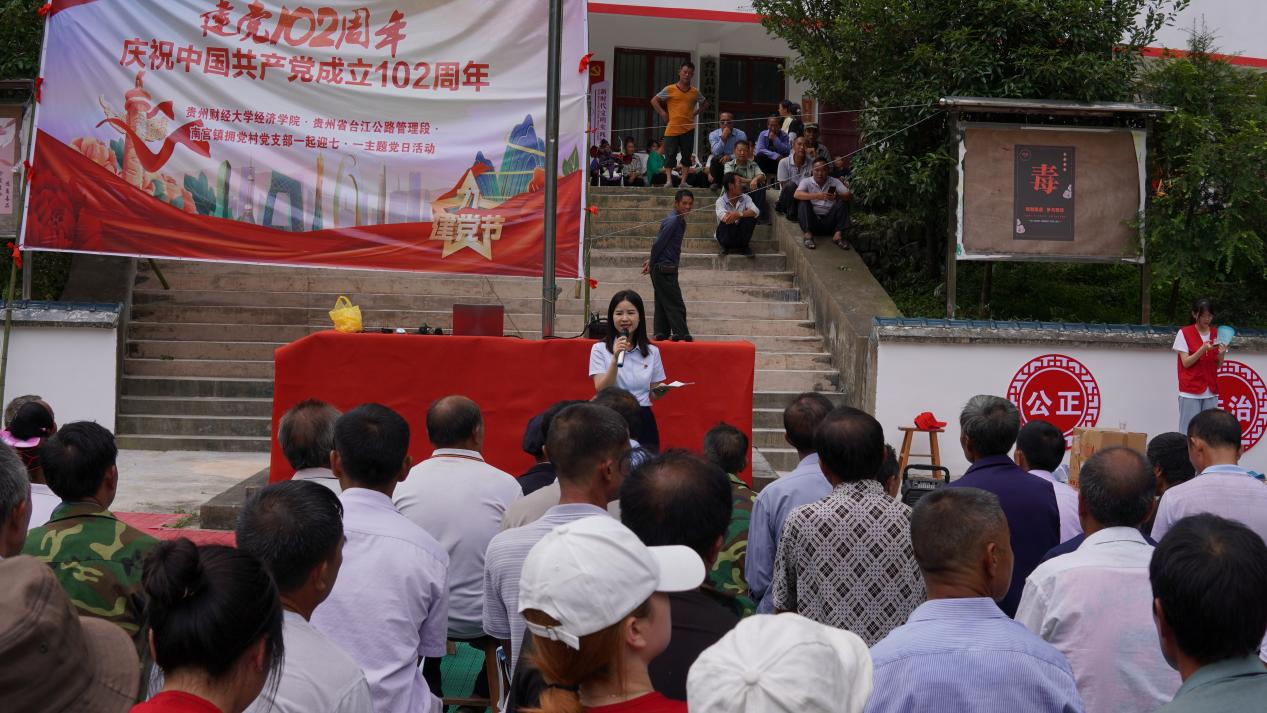7月1日,以拥党村党支部庆祝建党102周年主题党日活动为契机,“经心筑梦团”面向全体村民展开金融知识宣传活动,贵州银行黔东南分行金融知识宣讲员黄林凤为参加活动的党员同志宣讲相关金融知识,志愿者们向参加活动的党员同志发放了印有与防范金融风险、保护消费者权益、防范电信诈骗等相关内容的宣传折页和扇子、环保袋等宣传物料,并蹲下身来为他们详细解释折页中相关内容。