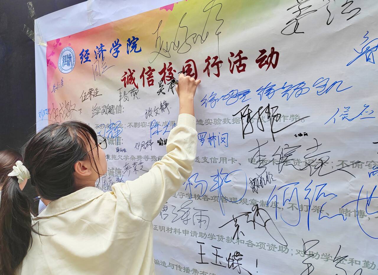 活动现场,“诚信校园行”主题区域,同学们郑重其事地在“以诚待人,以信立身”签名墙上签下自己的名字,表达了对诚信的承诺和坚守,员工们表示,通过参加这样仪式感很强的活动,更加深刻地认识到诚信的重要性,愿意在今后的学习生活中恪守诚信原则,也希望签名墙成为老师员工们共同守护诚信的见证。