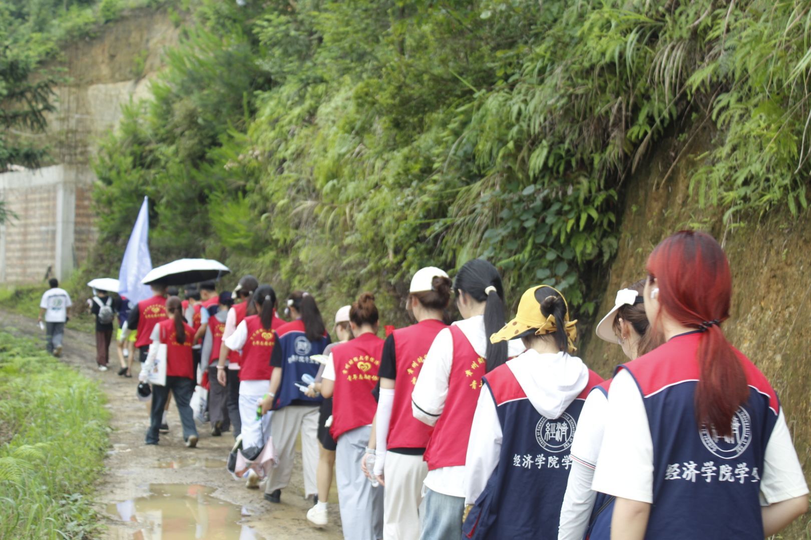 “重走长征路”环节,师生队伍沿着先辈们的足迹前行,尽管山路崎岖泥泞,暑气难耐,却丝毫未减大家探寻红色历史的热情。行进途中,大家相互扶持、彼此鼓励,用脚步丈量长征路。
