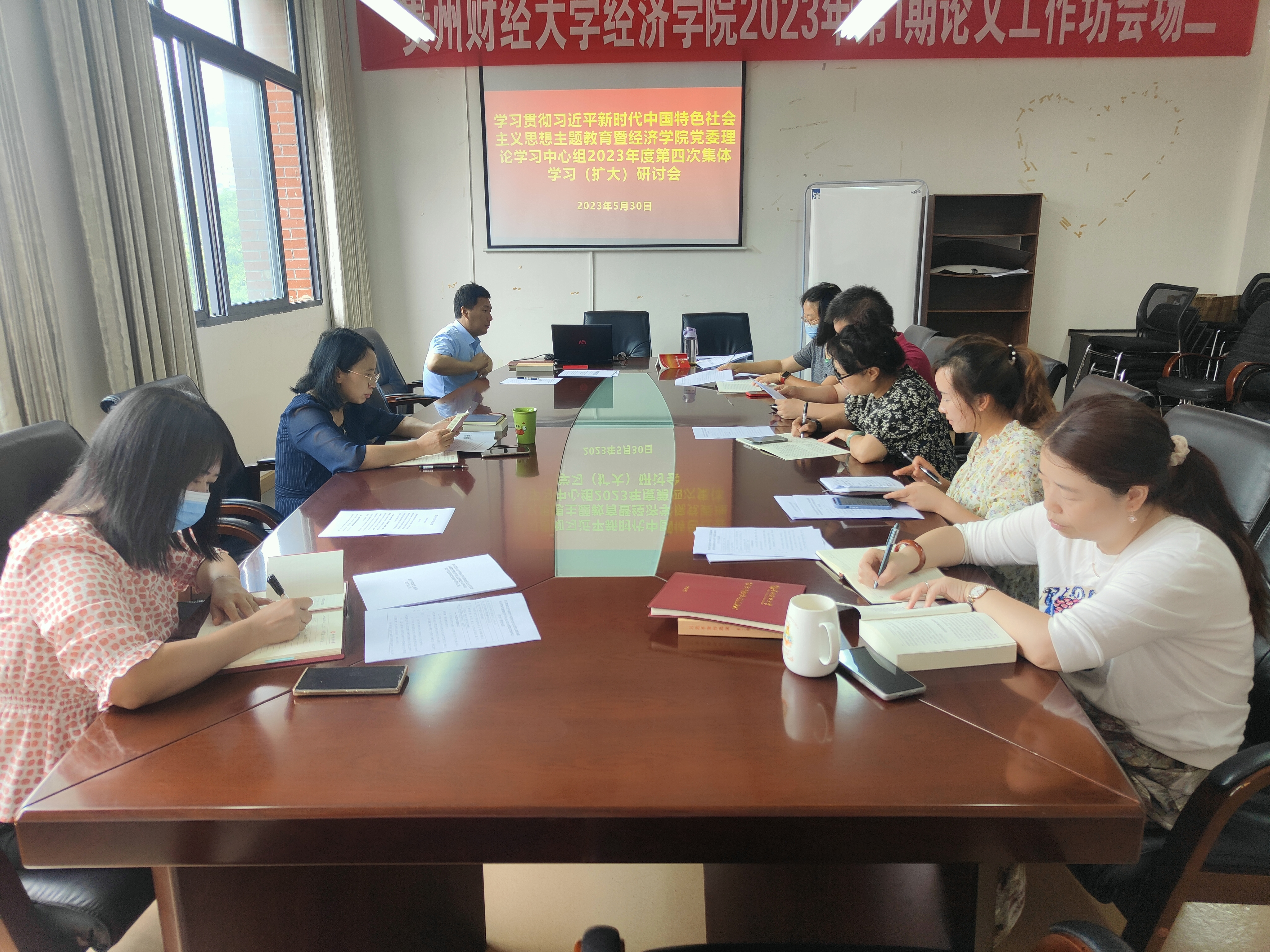5月30日,学习贯彻习近平新时代中国特色社会主义思想主题教育暨经济公司党委理论学习中心组2023年度第四次集体学习(扩大)研讨会在明德楼418会议室召开。williamhill英国官网全体处级干部、科级干部、支部书记参加学习研讨,会议由党委书记朱红琼主持。