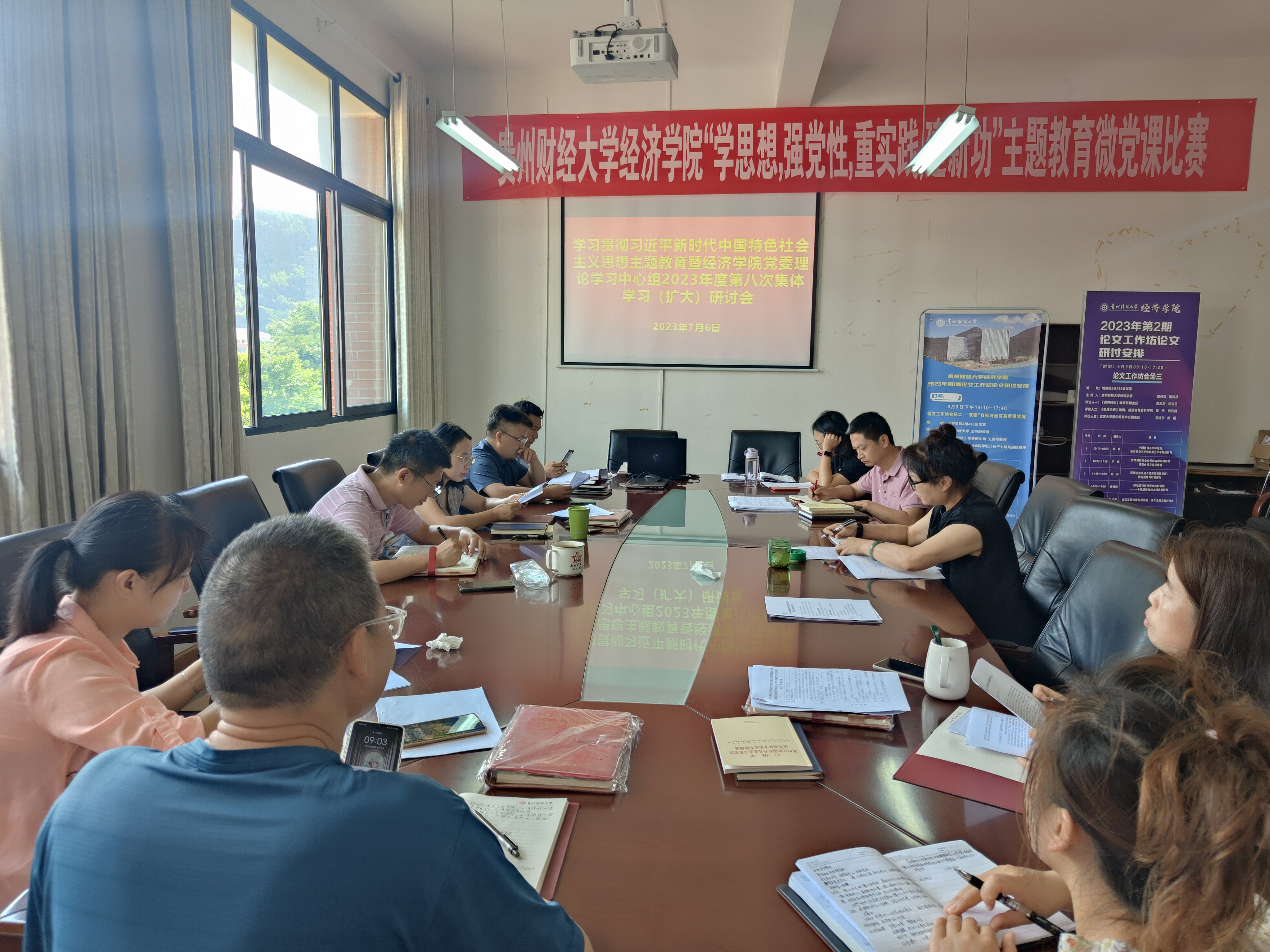 (来源:党办 高天石 图文报道)7月6日,学习贯彻习近平新时代中国特色社会主义思想主题教育暨经济公司党委理论学习中心组2023年度第八次集体学习(扩大)研讨会在明德楼418会议室召开。williamhill英国官网全体处级干部、科级干部、支部书记参加学习研讨,会议由党委书记朱红琼主持。