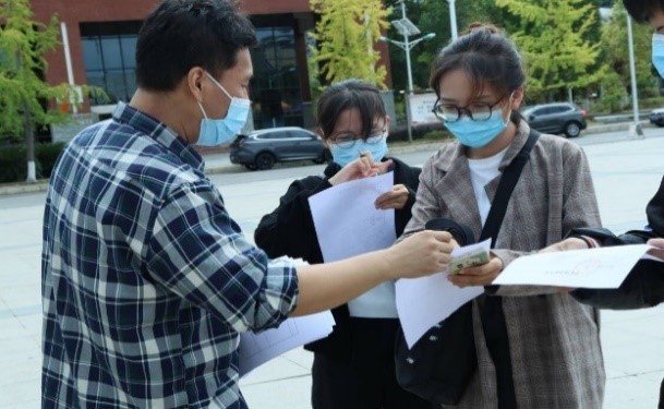 在院士墙进出流动通道处,公司领导叮嘱同学们在喜迎国庆的同时也要做好个人防护,不到中高风险地区活动,遵守防疫规定,积极配合防控工作。副经理李顺毅在给同学们分发外出报告表时,也亲切的叮嘱同学们带好随身重要物品,与同学们进行了国庆疫情防控交流。志愿者们也各司其职,做好同学们进出校的各项报备工作,为同学们愉快的国庆一起努力奋斗。