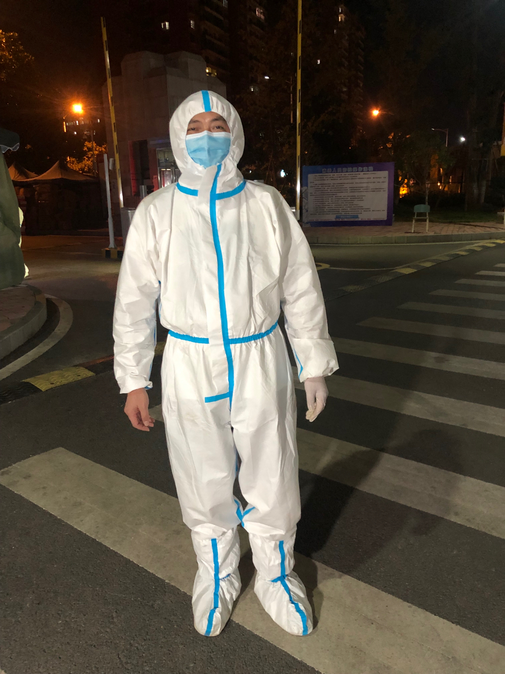 党员王世尧在报名时说:“我的课时和志愿队的排班时间有冲突,只要没课,群里有需要我就可以到!”,随后几天深夜都能看到穿着大白服扛着包裹的他的身影。