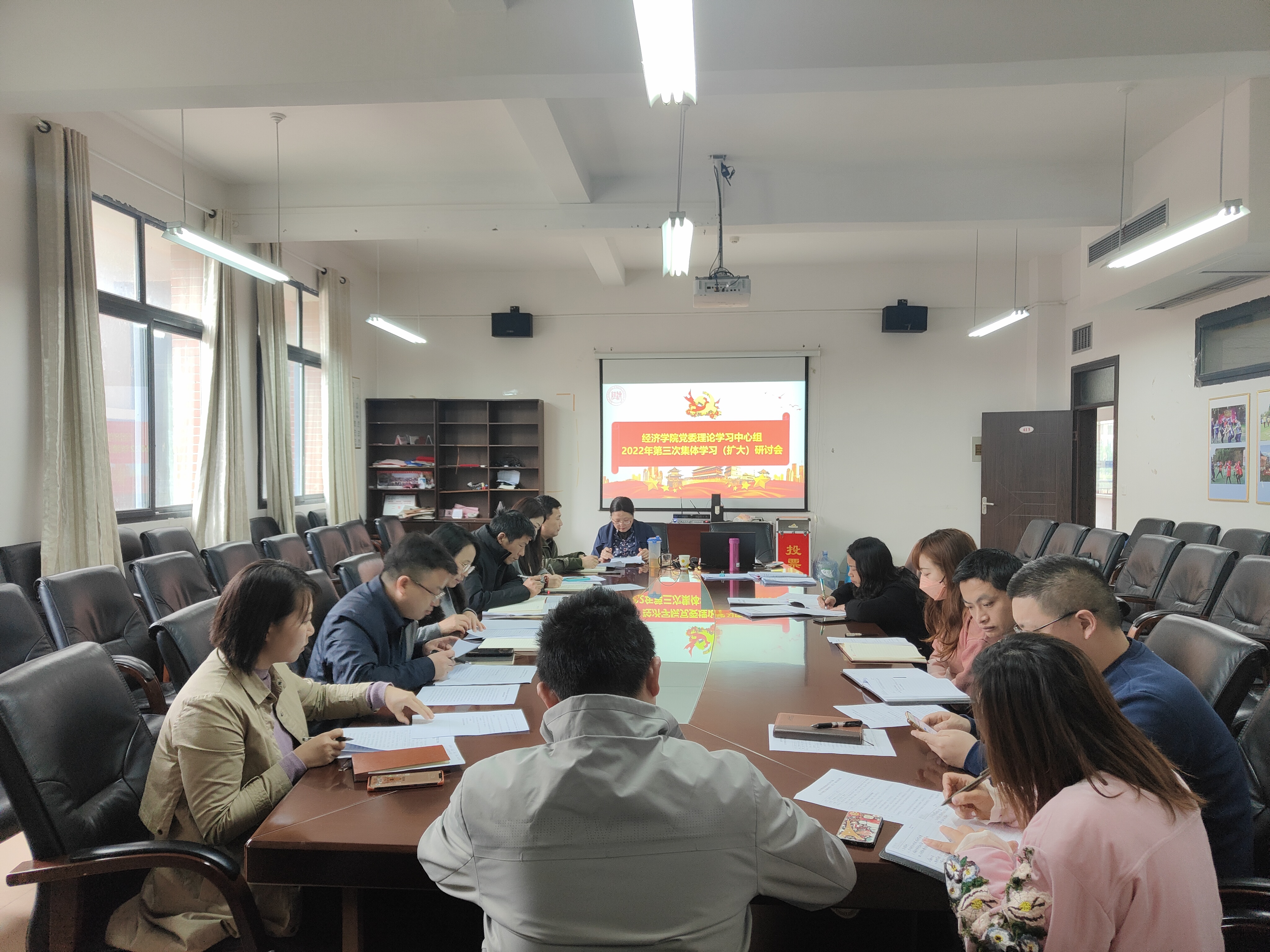 4月6日,经济公司党委理论学习中心组2022年第三次集体学习(扩大)研讨会在明德楼413会议室召开。williamhill英国官网全体处级干部、科级干部、支部书记参加学习,会议由党委书记朱红琼主持。