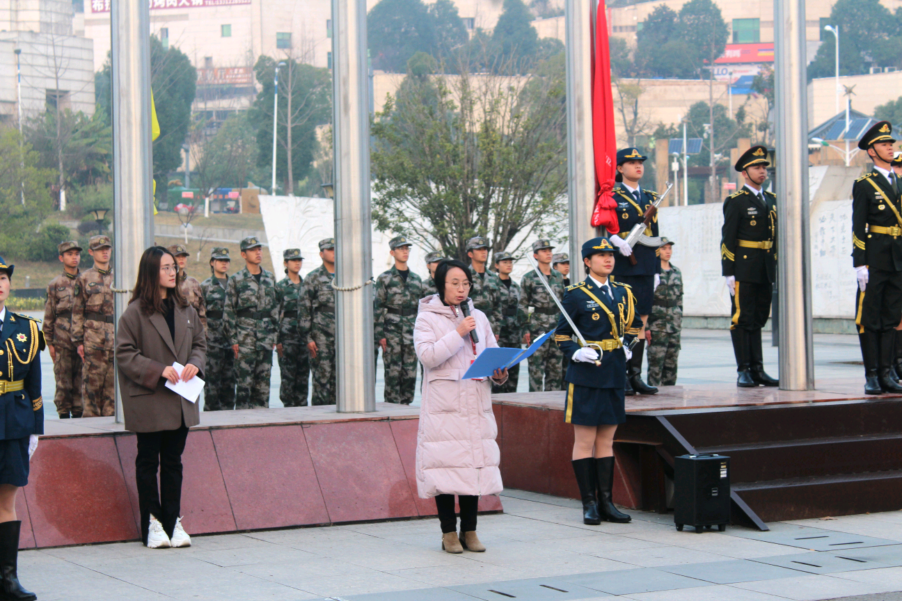 升旗仪式开始,国旗护卫队精神昂扬饱满,步伐整齐划一地护送国旗走向升旗台,伴随着雄壮的国歌《义勇军进行曲》响起,鲜艳的五星红旗冉冉升起,全体师生庄严肃立,向国旗行注目礼,齐唱国歌。随后公司党委书记朱红琼在国旗下发言,她强调新一代学子站在“两个一百年”奋斗目标的历史交汇点的重要时期,12月9日又恰逢一二·九抗日救亡运动纪念日,此次以升旗仪式开展爱国教育意义非凡。同学们要时刻牢记青年一代的使命担当,磨练坚强意志,努力奋斗增强个人素质,树立正确的世界观、人生观和价值观,为中华民族伟大复兴做出应有的贡献。