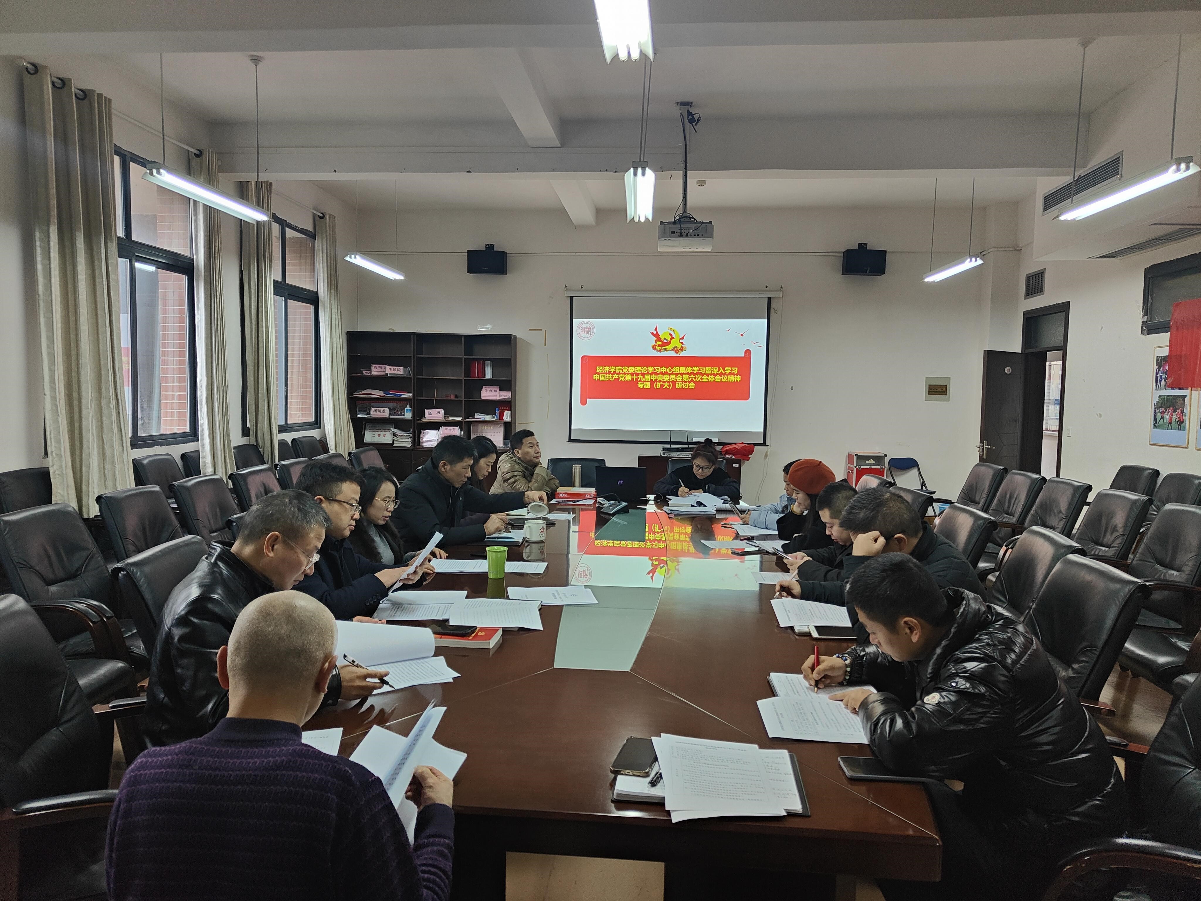 12月14日,经济公司党委理论学习中心组聚焦中国共产党第十九届中央委员会第六次全体会议精神主题,在明德楼413会议室举行2021年度第十三次集体学习研讨会。williamhill英国官网全体处级干部、科级干部、支部书记参加学习,会议由党委书记朱红琼主持。