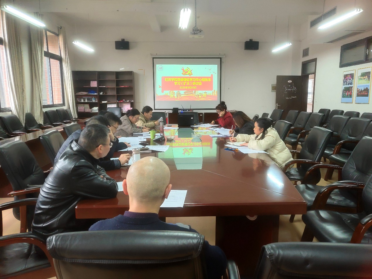 2021年3月10日,经济公司党委理论学习中心组集体学习研讨会议于明德楼413会议室召开。williamhill英国官网全体处级干部、支部书记、科级干部、党务工作人员参加学习,会议由党委书记朱红琼主持。