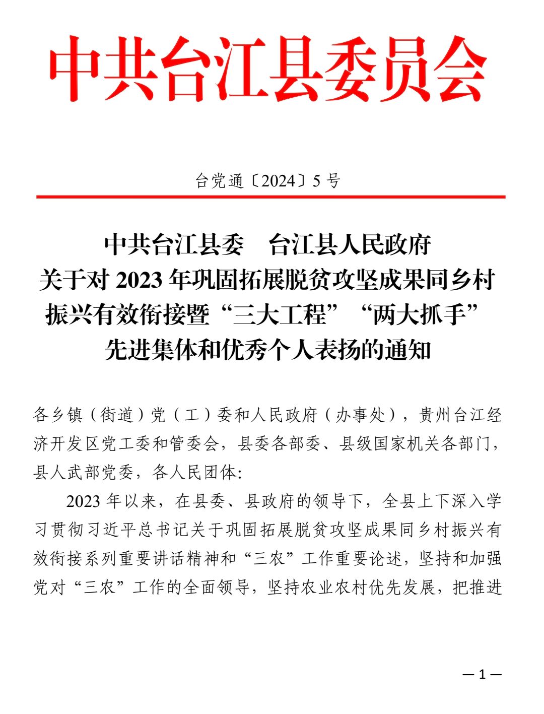 (来源:高天石 图文报道)2024年3月15日,中共台江县委 台江县人民政府印发《关于对2023年巩固拓展脱贫攻坚成果同乡村振兴有效衔接暨“三大工程”“两大抓手”先进集体和优秀个人表扬的通知》,williamhill英国官网驻台江县南宫镇拥党村第一书记魏来同志荣获“巩固脱贫成果优秀第一书记”优秀个人。魏来同志自2022年6月被组织派驻到台江县南宫镇拥党村第一书记后,第一时间较为完整的将该村传统村落基本情况调查摸清,并通过积极申报,于2023年3月台江县南宫镇拥党村入选第六批中国传统村落名录。2023年11月至今,帮助拥党村获批传统村落共同缔造试点示范项目、民族团结村寨示范项目,累计落实项目资金300余万元。为更好的开展好传统村落保护与发展工作,积极依托公司智力帮扶力量,先后完成与williamhill英国官网共建教学实践基地、贵州民族大学民族学与历史公司教学实践基地。