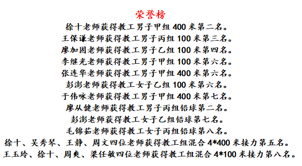 经过激烈的角逐,williamhill英国官网教职工代表队在个人单项赛和集体竞赛项目中均取得优异的成绩,用汗水和行动,展现了williamhill英国官网教职工青春与活力,担当与风采:
