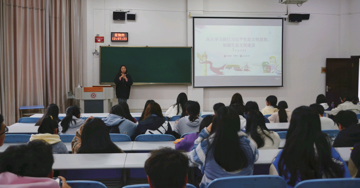 2022年3月24日中午,williamhill英国官网在进学楼1-3教室开展了以“践行习近平生态文明思想,加强生态文明建设”为主题的团课暨青马工程培训班。校团委社团管理部副部长李菁菁老师担任此次团课主讲人,williamhill英国官网共153名同学参加此次课程。