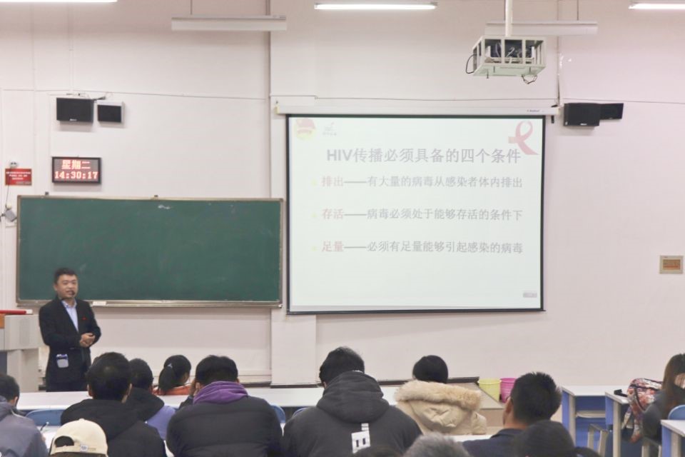 在活动现场王老师给同学们介绍了当前艾滋病的形式、传播方式、防治知识以及干预措施,并对同学们进行了反歧视、性健康教育以及禁毒知识宣传。在介绍过程中王老师通过小游戏的方式与同学们互动,活动现场的同学们积极参与配合,使本次宣讲活动达到了理想的效果。据活动结束后的讲座反馈问卷调查显示,同学们认为讲座使自己对艾滋病防治有了更深的了解,消除了自己对艾滋病的误解。自己以后会增强自我保护意识,并且力所能及的宣传有关艾滋病的知识,让更多人正视艾滋病,关注艾滋病患者并给予他们更多的理解和关爱。