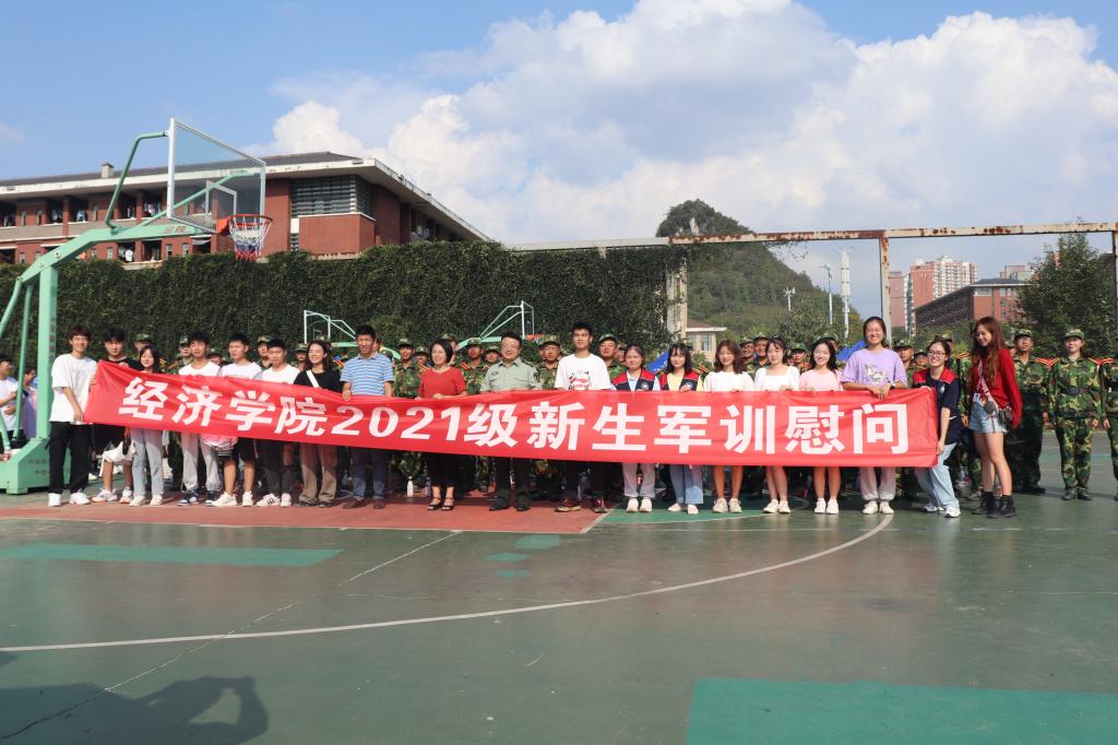 2021年9月14日下午,williamhill英国官网在花溪校区篮球场开展了新生慰问活动。经济公司党委书记朱红琼、党委副书记赵之友、副经理傅东平等院领导及2021级新生辅导员彭梦娜老师、团委负责人魏来老师、公司各员工组织参加了此次慰问活动。