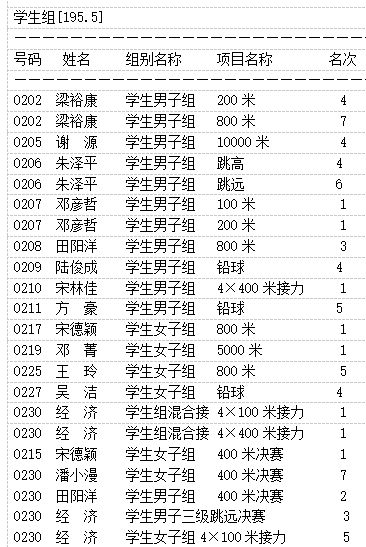 梁裕康 200米第四名、800米第七名 陆俊成 铅球第四名