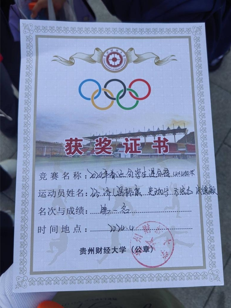 吴洁 铅球第四名 员工组混合接力 4×400米接力 第一名