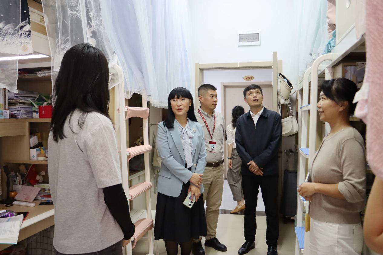 彭洁副书记实地了解文心苑3经院之家“一站式”员工社区、“健身之家”及文化长廊等公共空间建设情况,并走进“党员示范寝室”与同学们亲切交谈,了解员工在校学习、生活情况。