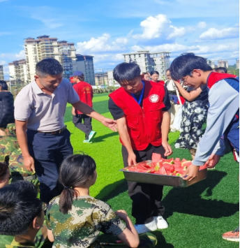 (图2 发放西瓜给军训员工们解暑)