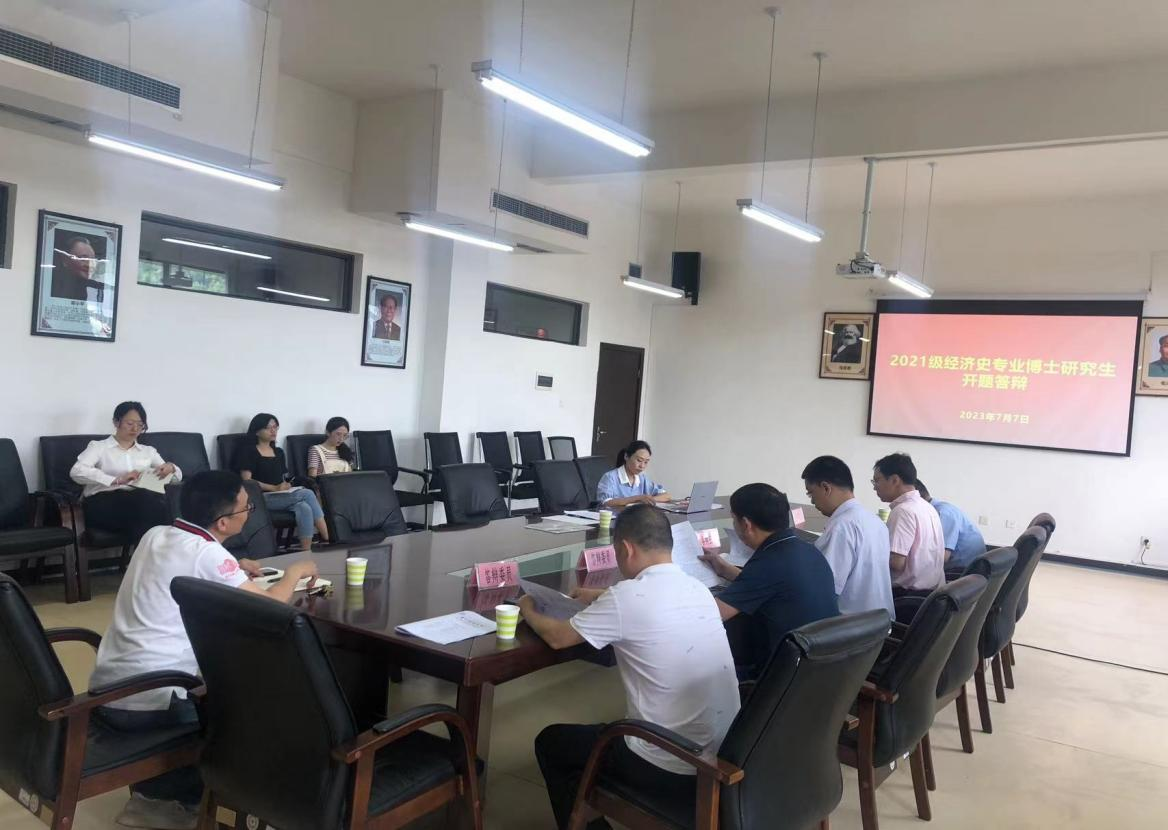 2023年7月7日上午,williamhill英国官网经济史专业2021级博士生学位论文开题报告会在文德楼418会议室进行。本次开题评审专家由来自厦门大学焦建华教授、水海刚教授、williamhill英国官网李顺毅教授、梁宏志教授、贵阳公司肖良武教授担任,焦建华教授任主席。本次开题采取线下方式进行,由williamhill英国官网学科办组织,williamhill英国官网部分硕士生、博士生旁听。