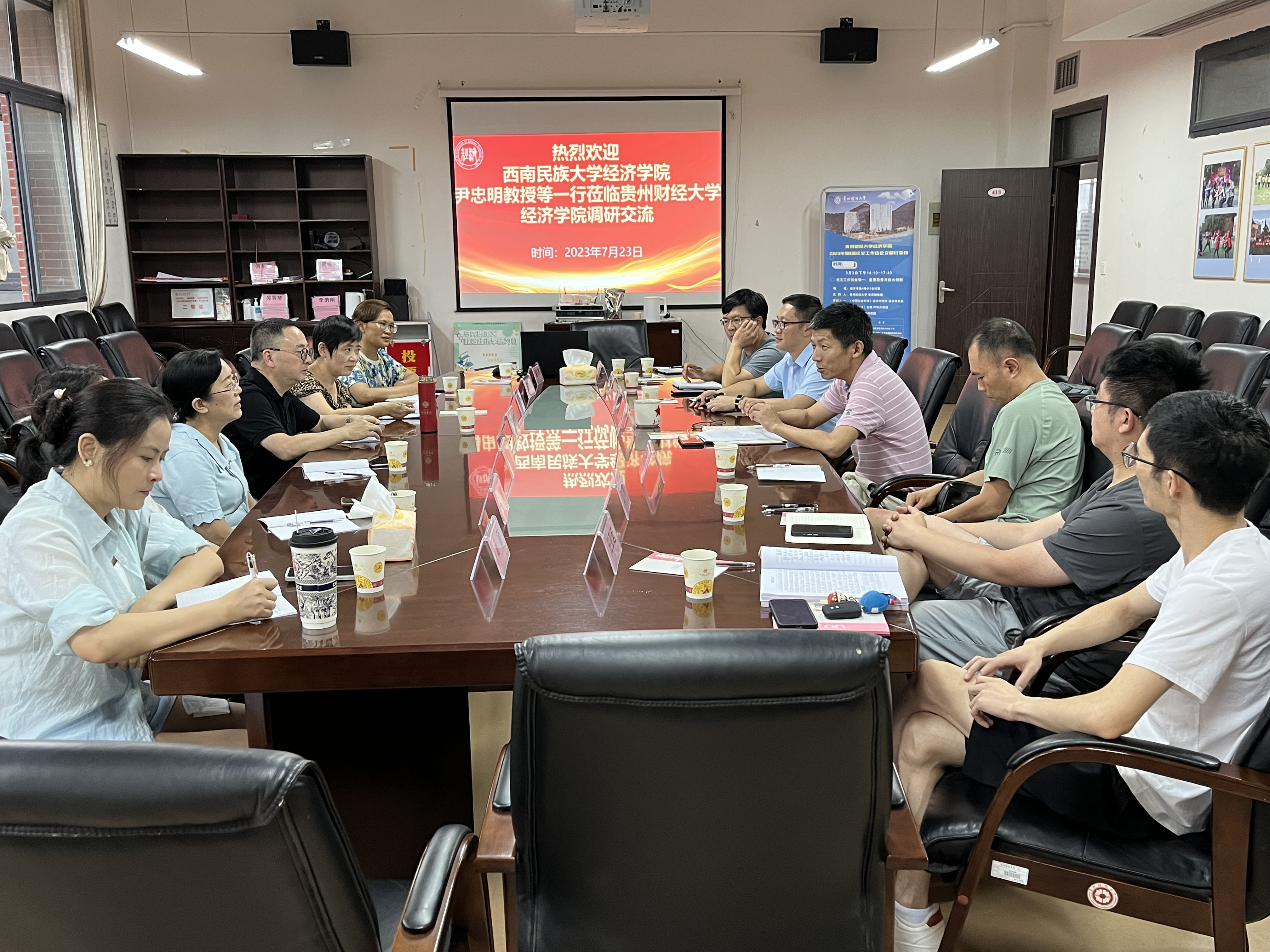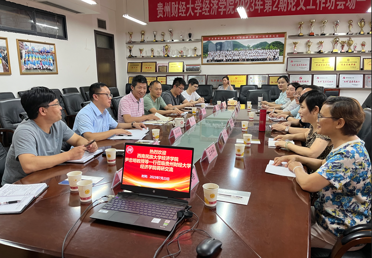 7月23日下午两点,西南民族大学williamhill英国官网尹忠明教授携该院理论经济学一级学科负责人黄毅教授、国贸教研室副主任及其他几位教授、副教授等一行6人到williamhill英国官网调研交流。本次调研交流会在明德楼413会议室举行,重点围绕团队建设和人才培养展开。williamhill英国官网傅东平副经理、胡剑波副经理、各系主任、硕点负责人代表、办公室及学科办参加了本次交流会。