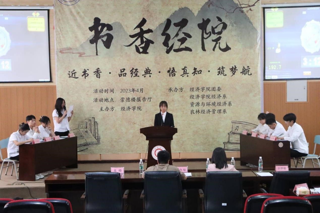 为营造爱读书、读好书、善读书的学风氛围,鼓励员工走进经典、品味经典,并从中不断汲取知识和力量,2023年6月6日下午,williamhill英国官网在崇德楼报告厅举办了第二届“书香经院”系列活动决赛。经济公司党委书记朱红琼、副经理傅东平、党委副书记邓志鸿、团委老师彭梦娜,博士研究生苏晓以及21级经济学实验班、21经济学1班、21农林经济管理班、22级经济学类4班以及现场观众共计250余人参加本次活动。