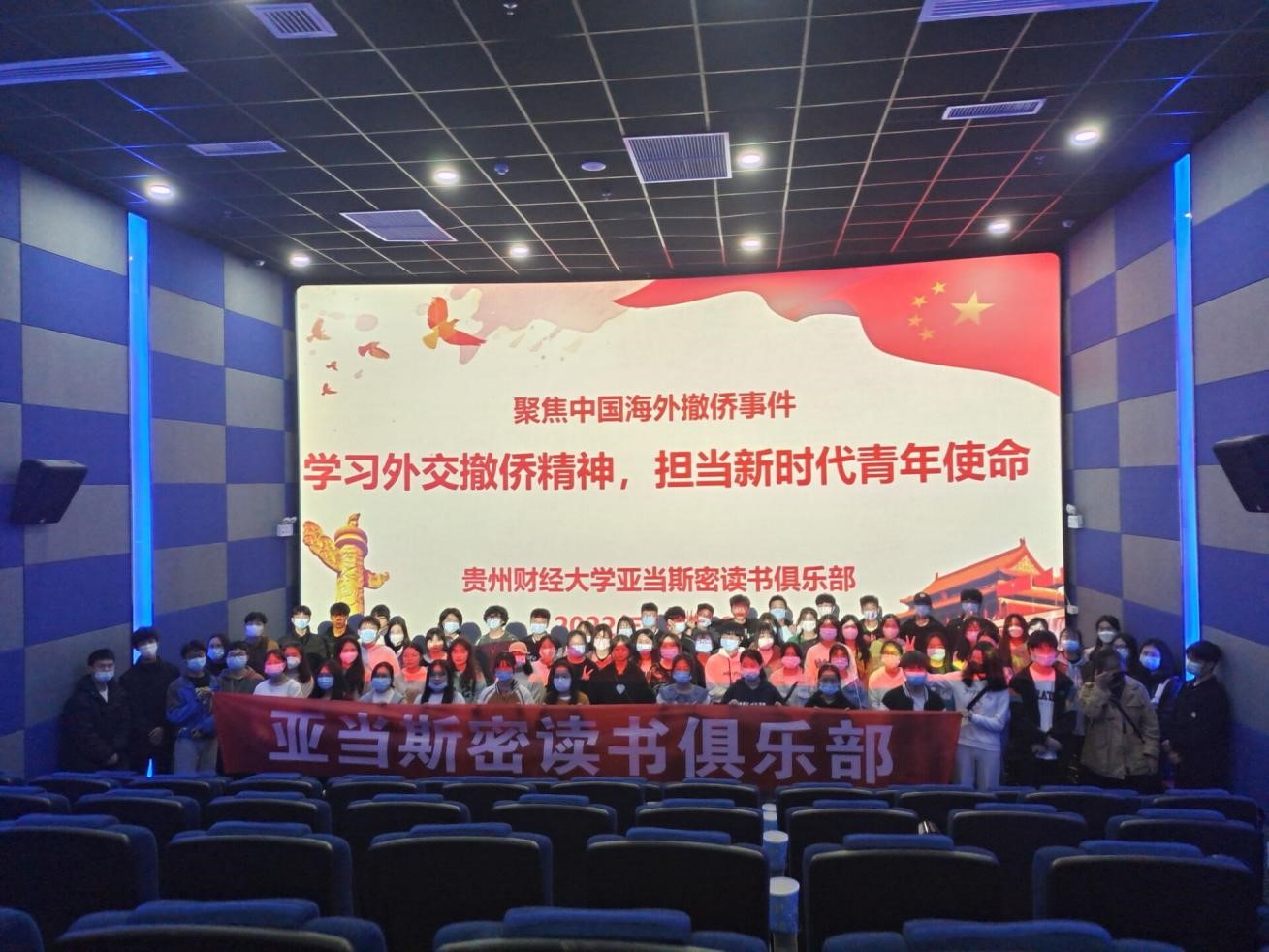 活动开始前,同学们佩戴好口罩到指定地点集合,由亚当·斯密俱乐部工作人员组织员工排队扫场所码进入上影国际影城,在电影播放前,全体俱乐部成员在电影屏幕前进行拍照留念。电影播放过程中,我们看到宗大伟因为外交工作而不能像寻常人家一样在怀孕的妻子需要的时候守候在身边的无奈和悲伤;年轻的成朗带领在努比亚被困同胞撤离的英勇无畏;努比亚被困同胞哪怕知道前方路途遥远战火纷飞依旧保持对祖国的坚定信念;深受战争摧残的无辜努比亚人民的痛苦......。2个小时17分钟后电影结束,大家内心都有很深的触动,离场时纷纷在谈论交流自己的感受。