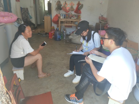第二小组:潘小醒、韦国佳、王艳于9:00到岩上村。10:00看望孤寡老人、留守儿童、老党员; 给孩子们发放漫画。11:00下地调查红薯情况,体验农民生活。15:00到达幸福园,走访民户调查红心红薯情况。