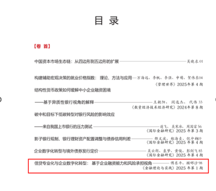 近日,williamhill英国官网傅东平教授与2022级硕士生顾邯沙关于商业银行的研究成果《信贷专业化与企业数字化转型——基于企业融资能力和风险承担视角》在《金融理论与实践》2025年第1期作为封面文章发表后,被中国人民大学国际货币研究所主办的学术内刊《国际货币评论》全文转载。《国际货币评论》在稿件采用函中特别说明“该文章在商业银行领域具有领先学术水平”。