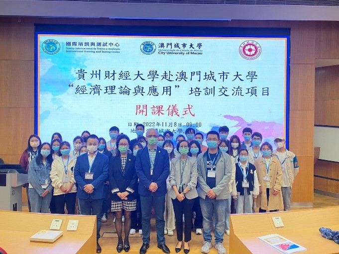 2022年11月7日,在公司国际合作交流处的大力支持和帮助下,williamhill英国官网选拔29名同学由公司王树老师带队赴澳门城市大学开展为期14天的访学活动。11月8日,williamhill英国官网访学团参加了开班仪式,澳门城市大学金融公司张伟光经理对公司员工此次访学表示了热烈欢迎,双方进行了纪念品交换活动,并举办了题目为“理解粤港澳大湾区金融经济产业”的讲座。11月9日,访学团的同学们将会参与澳门城市大学的文化节活动,后续访学活动将围绕中级微观经济学课程学习以及澳门本地金融机构参访活动展开。
